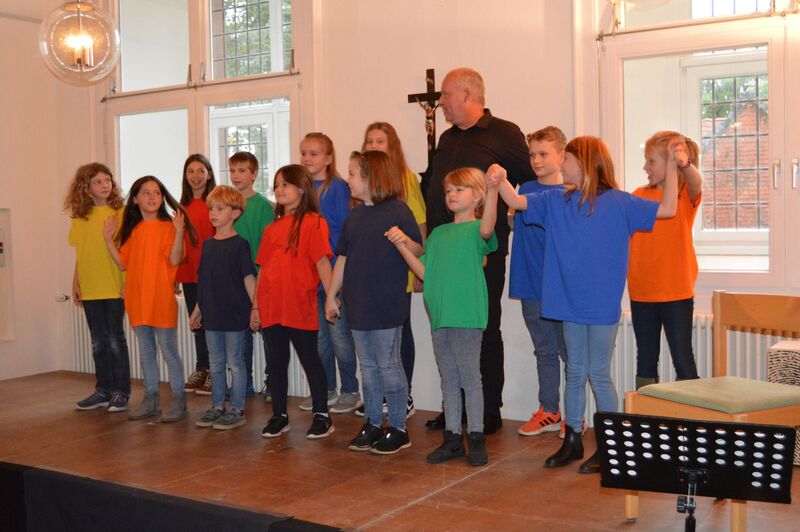 14 Kinder aus Förste, Nienstedt und Eisdorf haben innerhalb von 5 Wochen mit Liedermacher Frank Bode ein kleines Bühnenprogramm zum Motto "Ich kann einfach Alles sein!" erarbeitet und dieses den begeisterten Eltern, Großeltern und Gemeindemitgliedern im Gemeindesaal präsentiert.