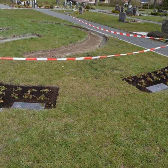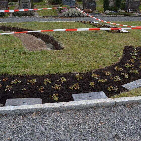Mit den Arbeiten für das neue "pflegefreie" Grabfeld auf dem Friedhof in Nienstedt wurde begonnen. Dieses Grabfeld ist als Alternative zu den im Rasen eingelassenen Namensplatten gedacht.