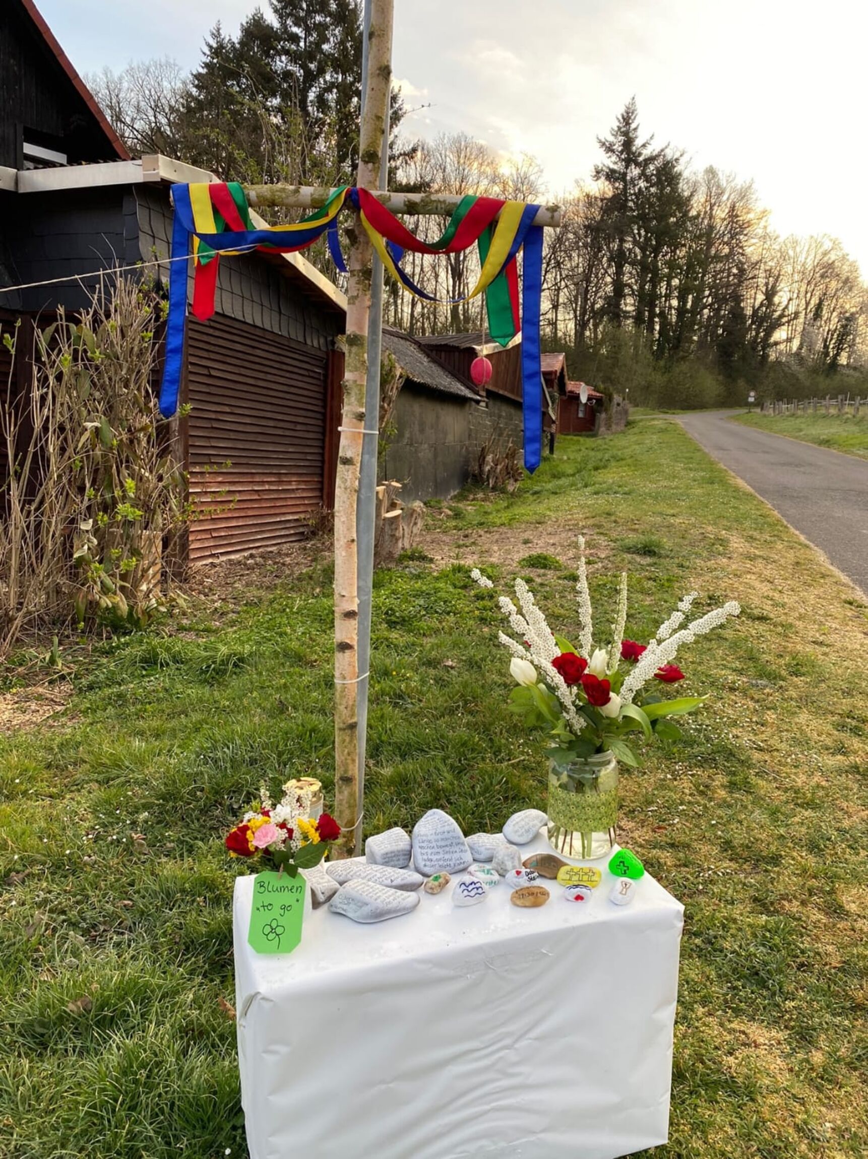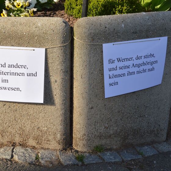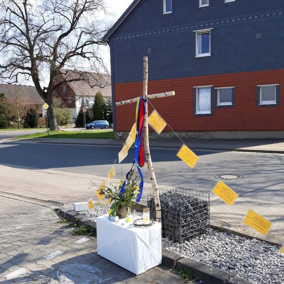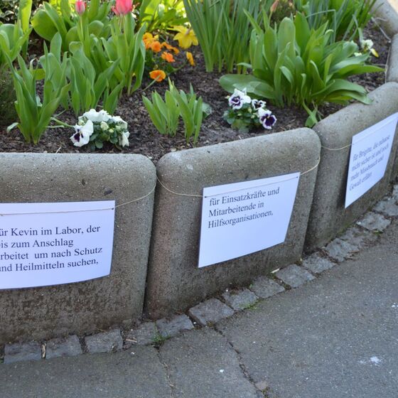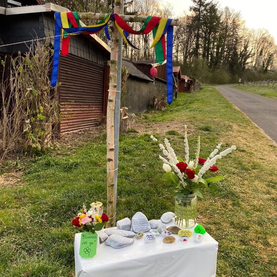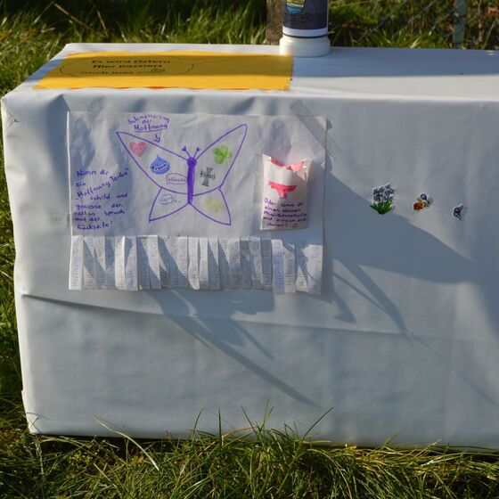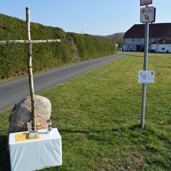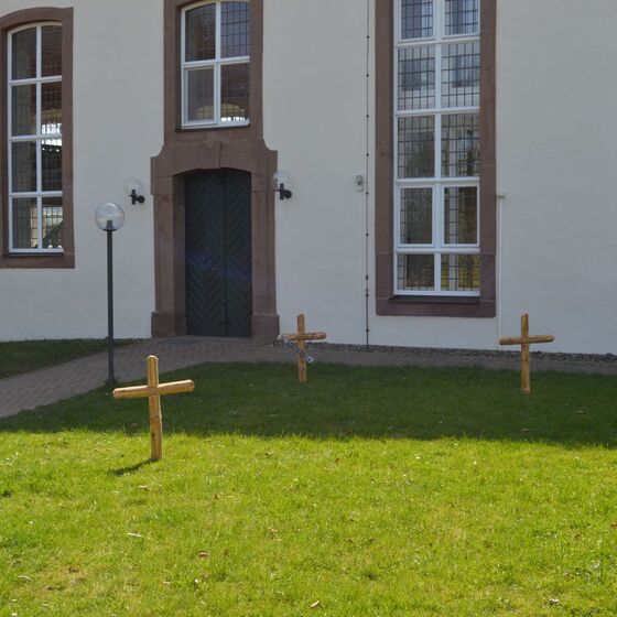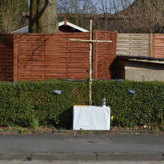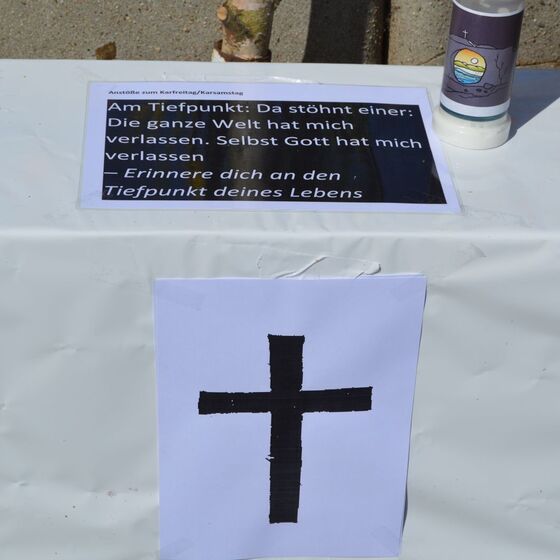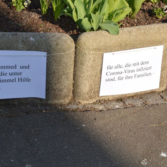 Die am Anfang der Karwoche vom Kirchenvorstand aufgebauten Osterstationen wurden vielfach erweitert. Jede Station mit einer individuellen Botschaft, zur Besinnung und zum Mitmachen. Ab Ostersonntag mit Blumenschmuck und Ostersteinen.