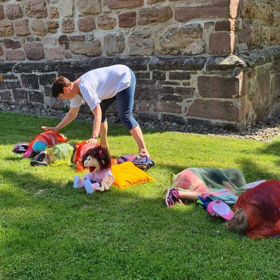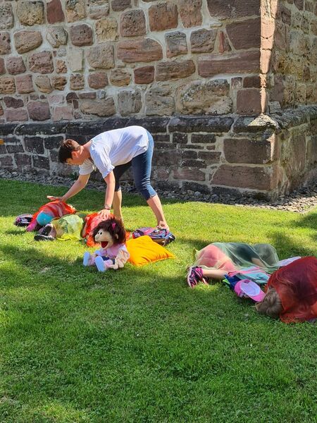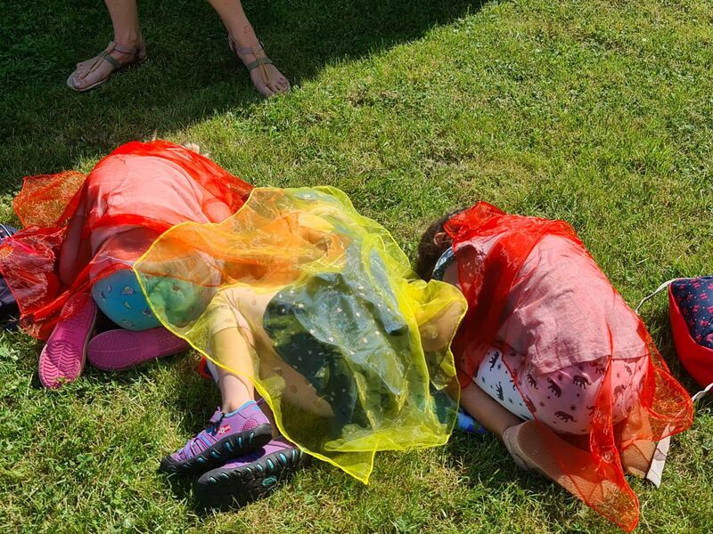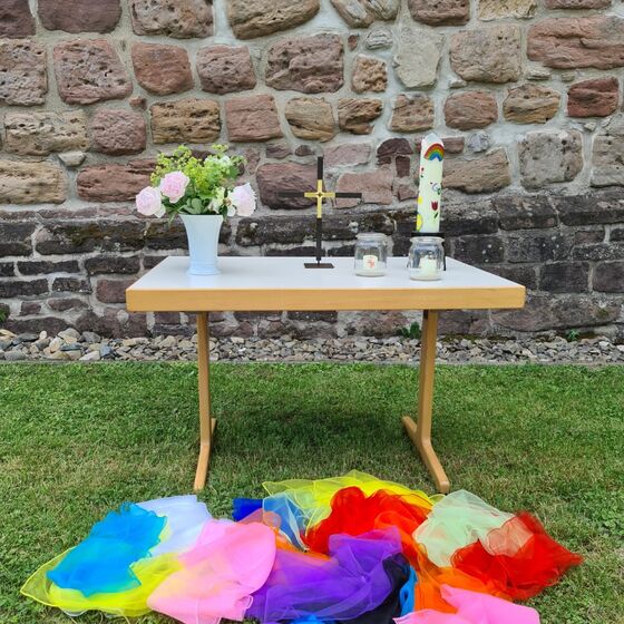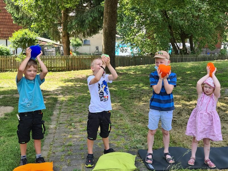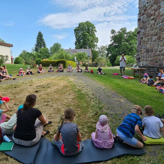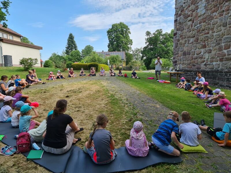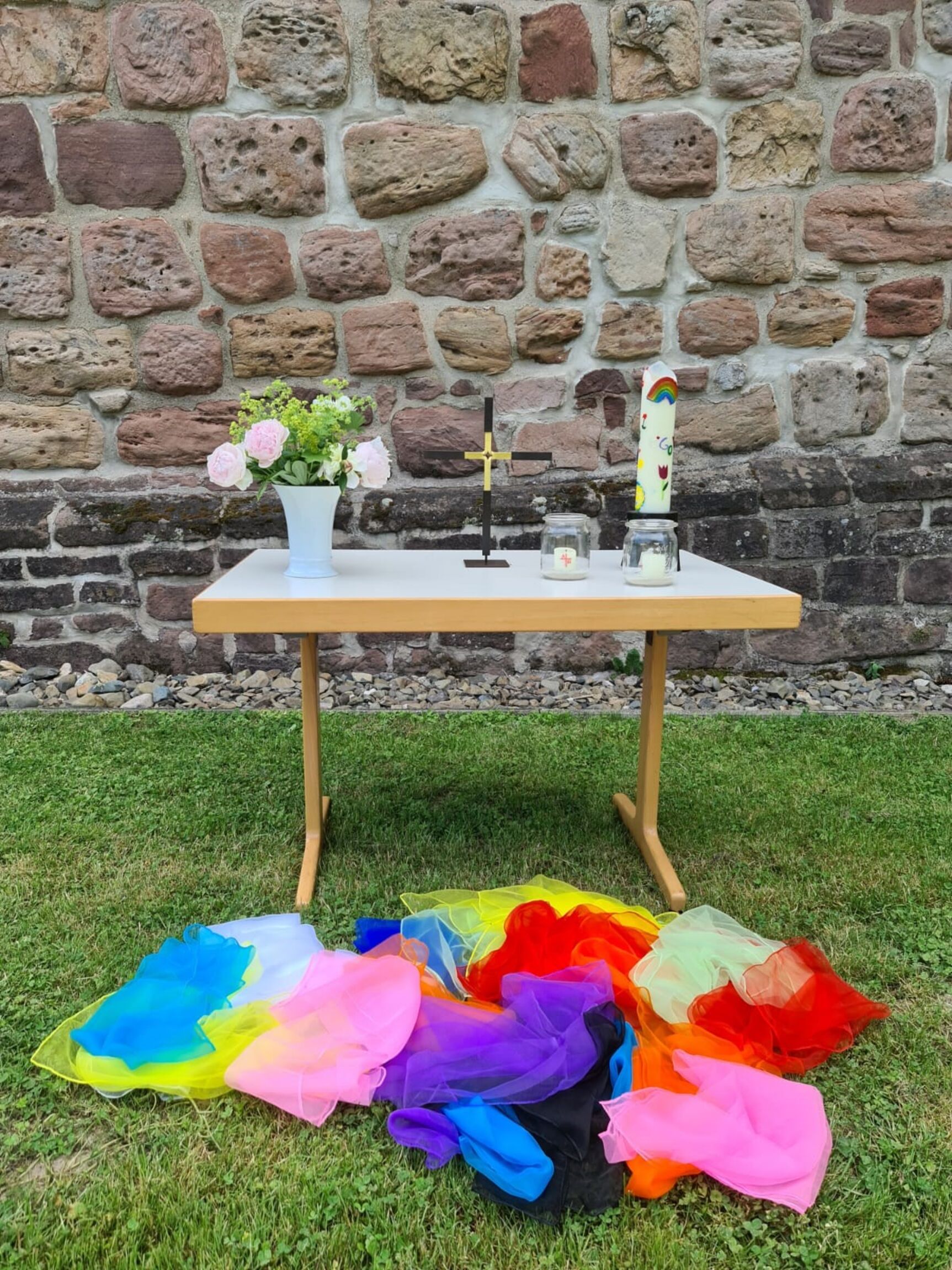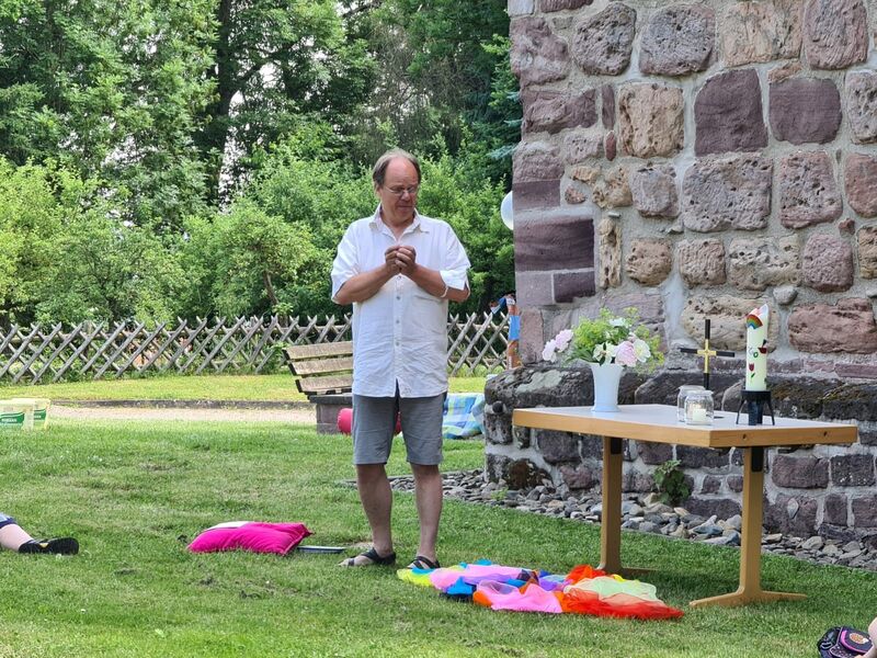 Bei besten Sommerwetter fand der KiGo wie geplant draußen vor der Kirche statt. Zum Thema Neubeginn, wachsen, blühen haben wir gesungen, Geschichten gehört, Samenbomben gematscht.