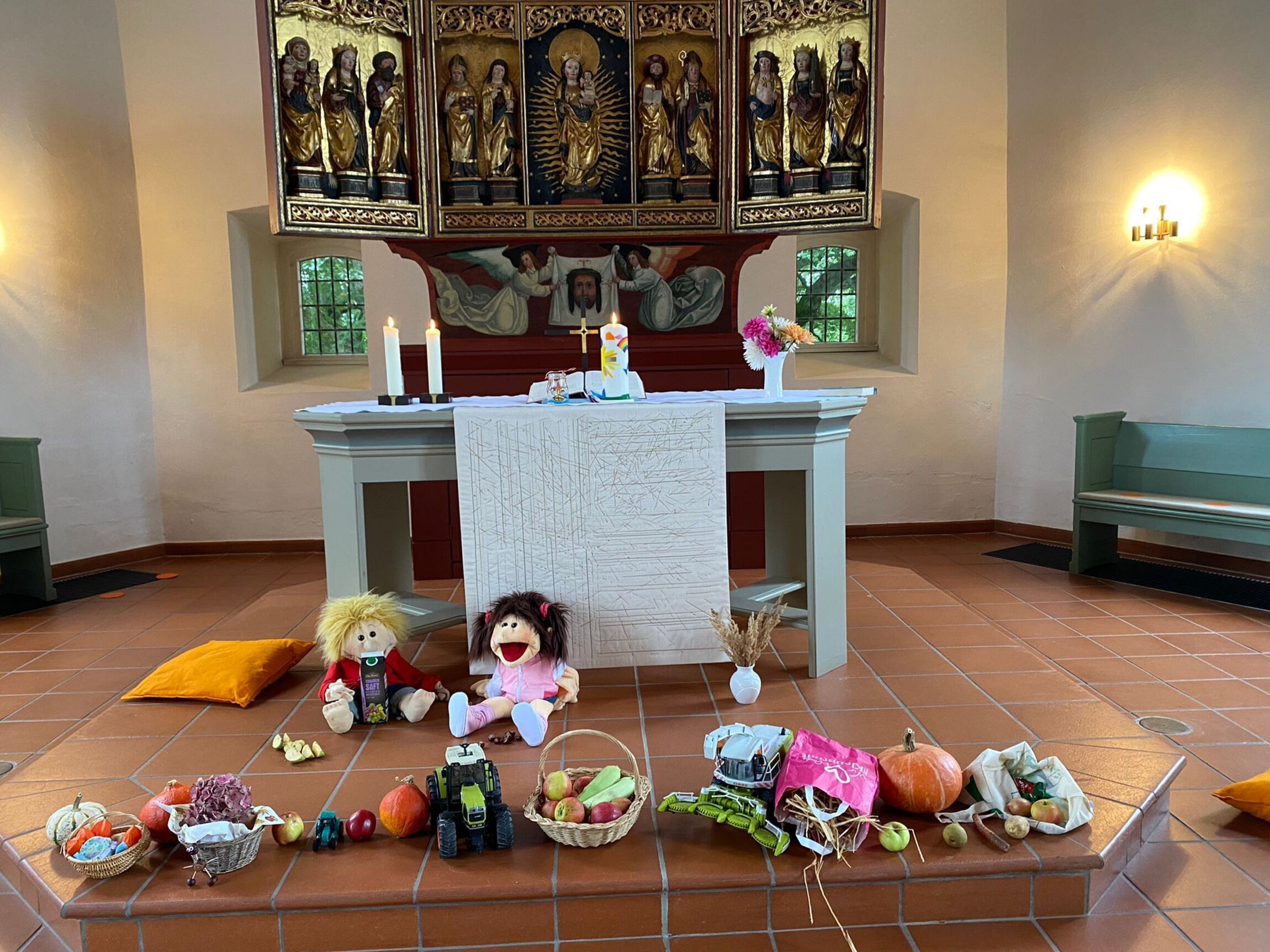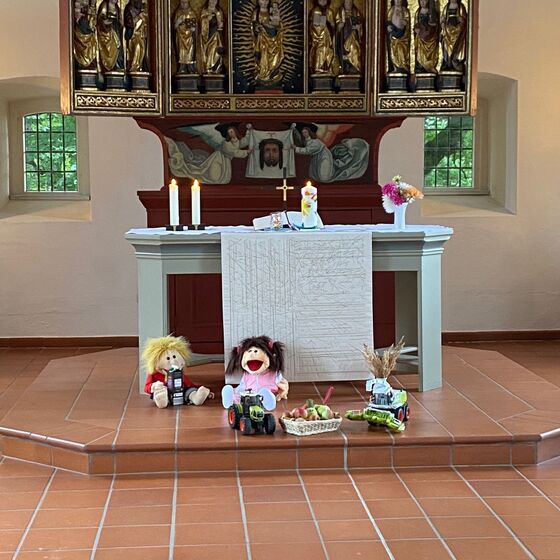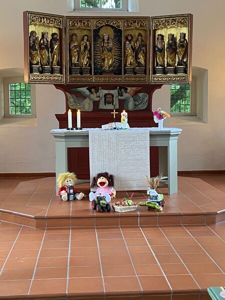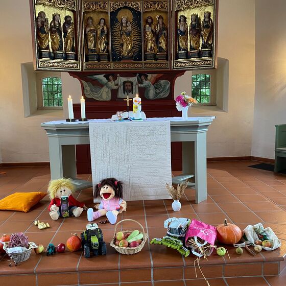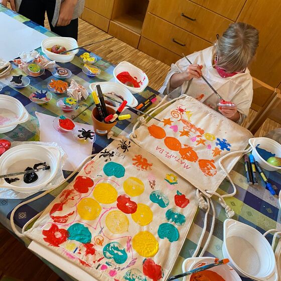 Die Kinder haben beim KiGo Erntedank gefeiert, den Altar geschmückt und eine Geschichte vom Apfel gehört. Anschließend wurden Rucksäcke mit Apfeldrucktechnik bedruckt. Der nächste KiGo findet am 16.10. von 10.30 - 12 Uhr statt.