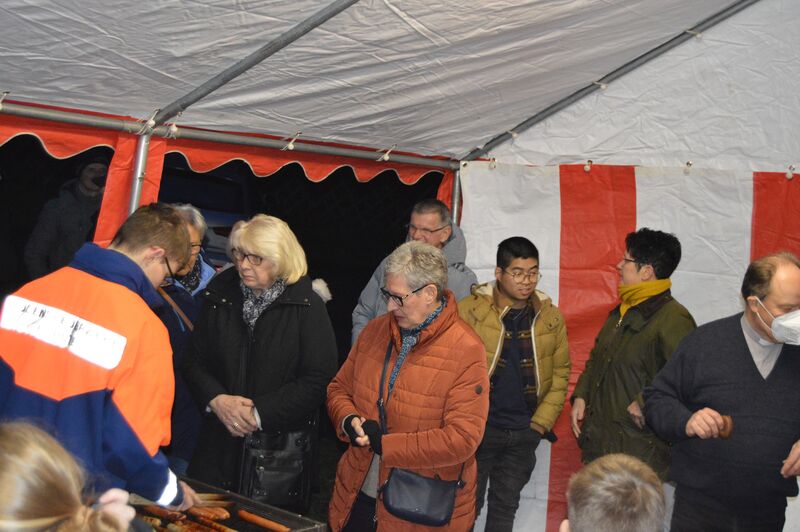 Vor der Kirche wurden Bratwurst und Getränke von der Jugendfeuerwehr angeboten. Pastor Rumberg lud parallel zu einer Turmführung ein.