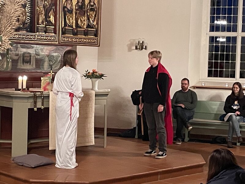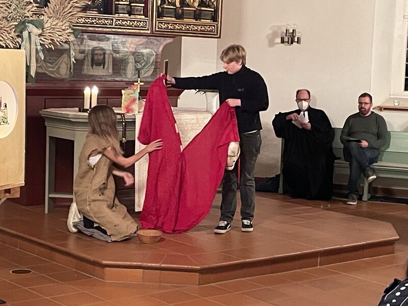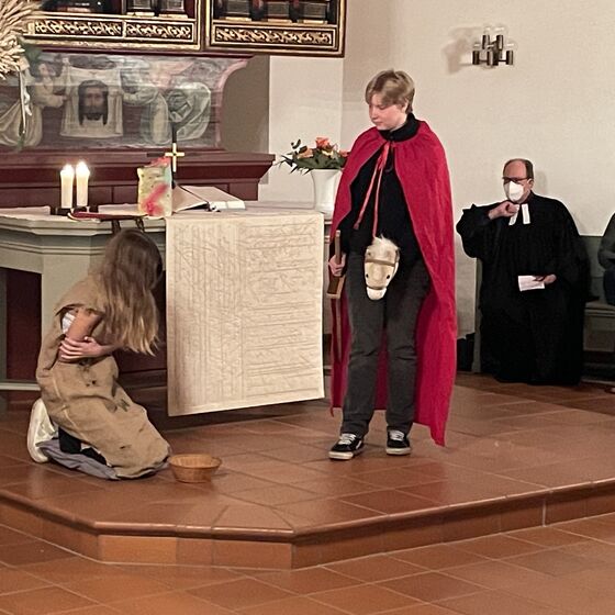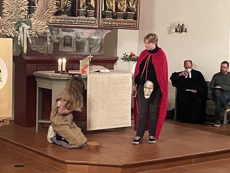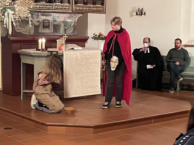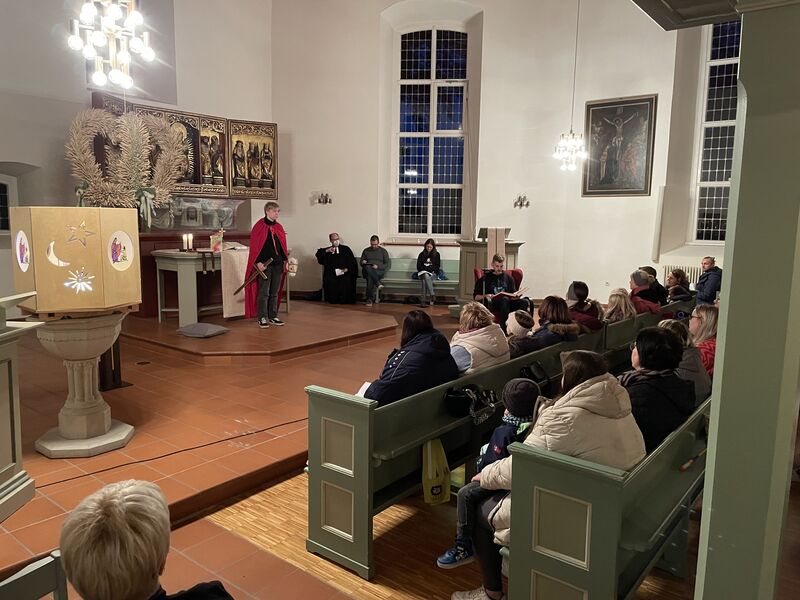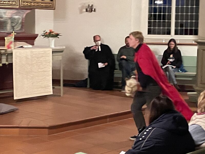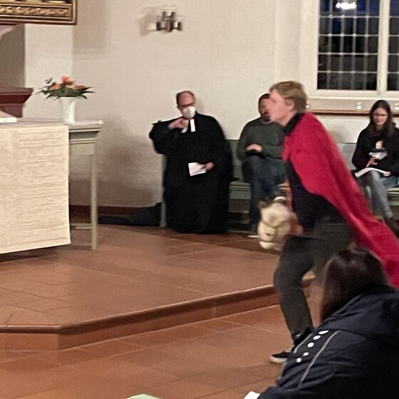 Im Anschluß an die Begrüßung durch Pastor Rumberg erzählte der Jugendkreis in bewegten Bildern die Geschichte vom heiligen St. Martin, dem Namensgeber der St. Martinskirche in Nienstedt.