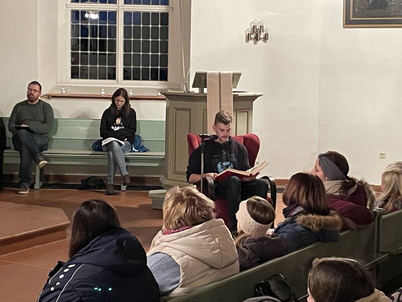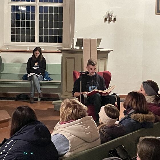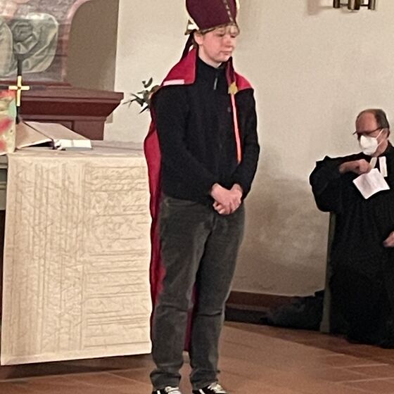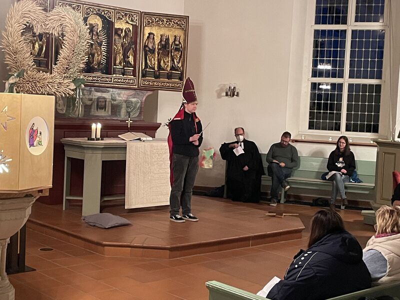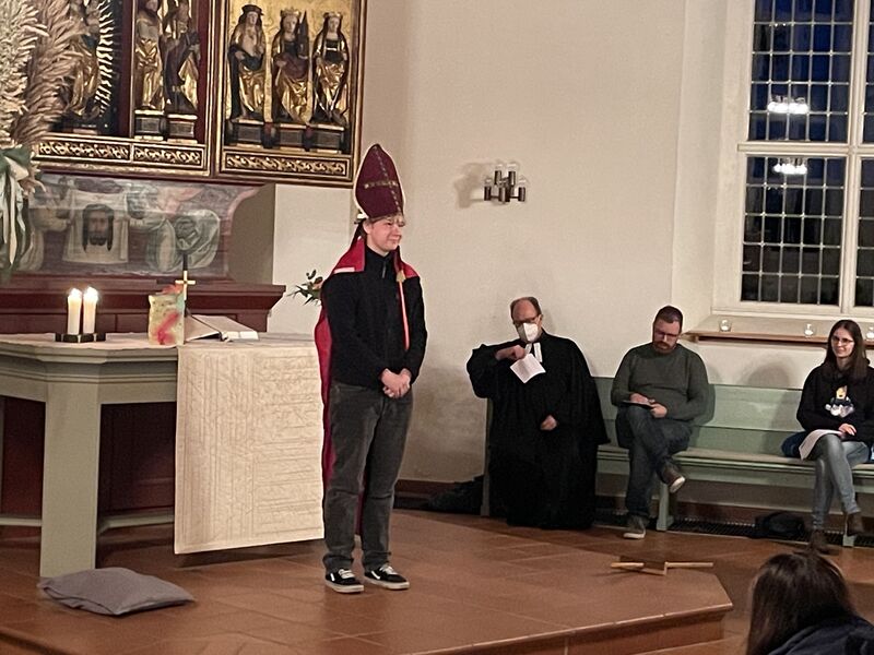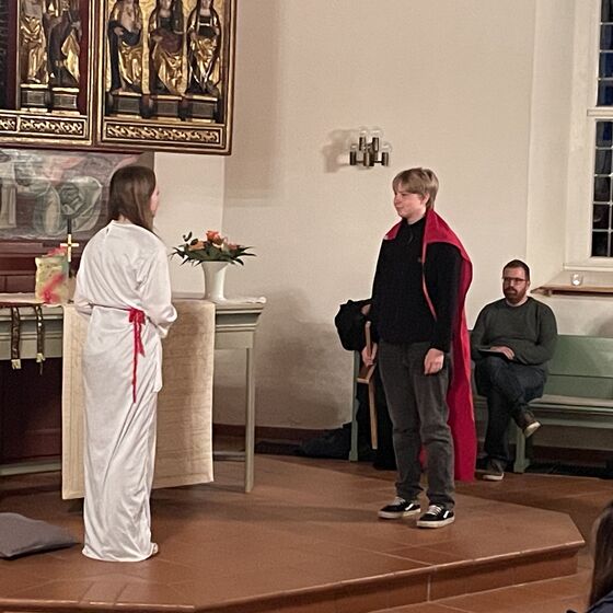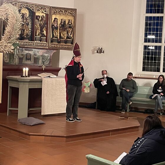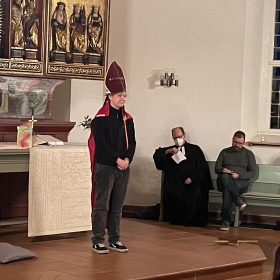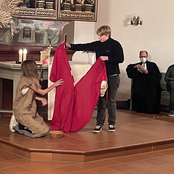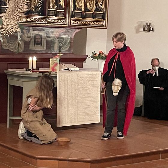 Im Anschluß an die Begrüßung durch Pastor Rumberg erzählte der Jugendkreis in bewegten Bildern die Geschichte vom heiligen St. Martin, dem Namensgeber der St. Martinskirche in Nienstedt.