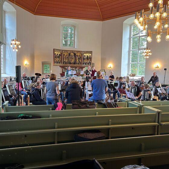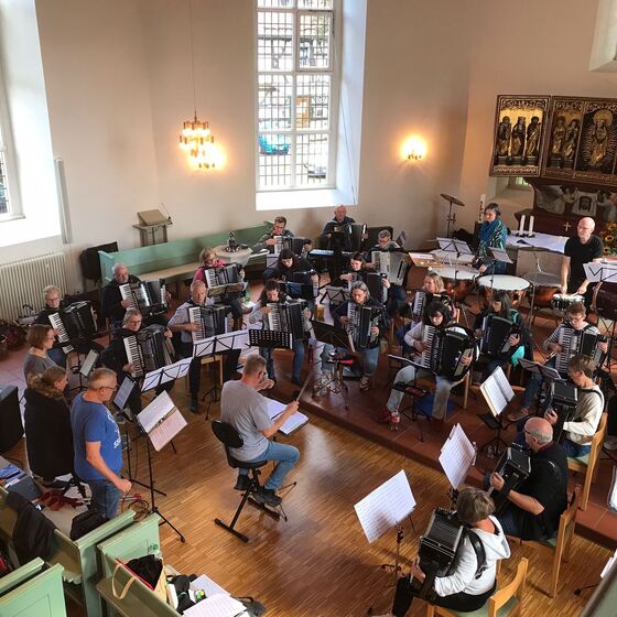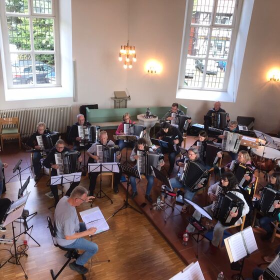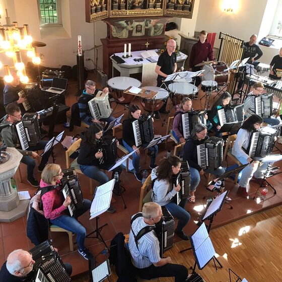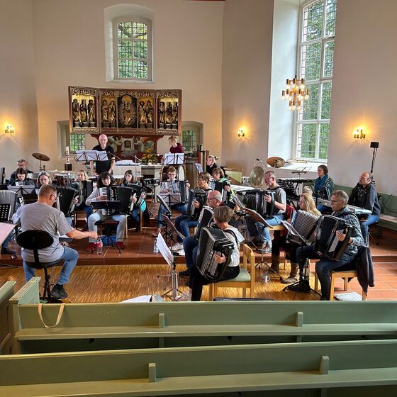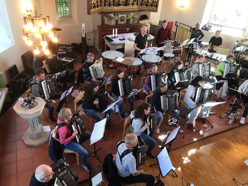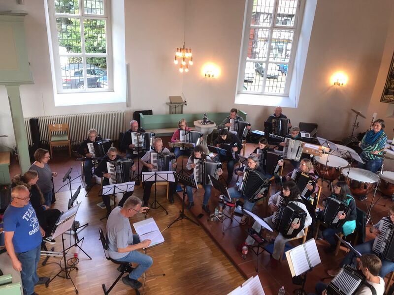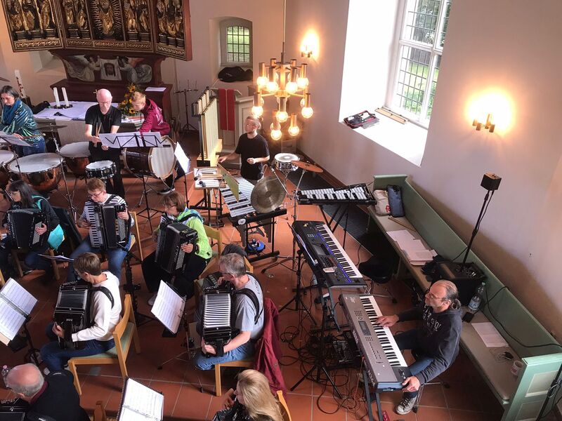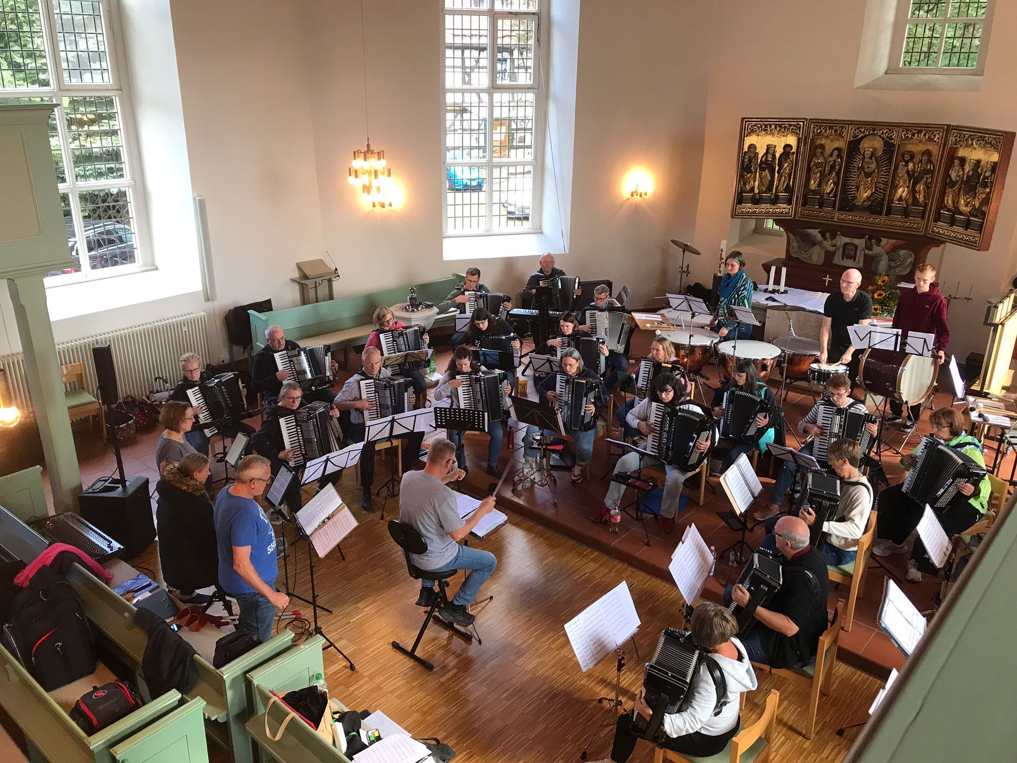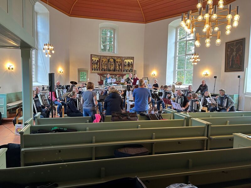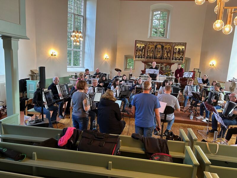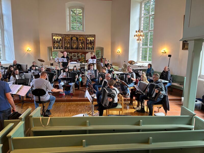 Am letzten Wochenende hat das Landesakkordeonauswahlorchester Niedersachsen "Accollage" mit 30 Musikerinnen und Musikern in der Nienstedter Kirche geprobt.