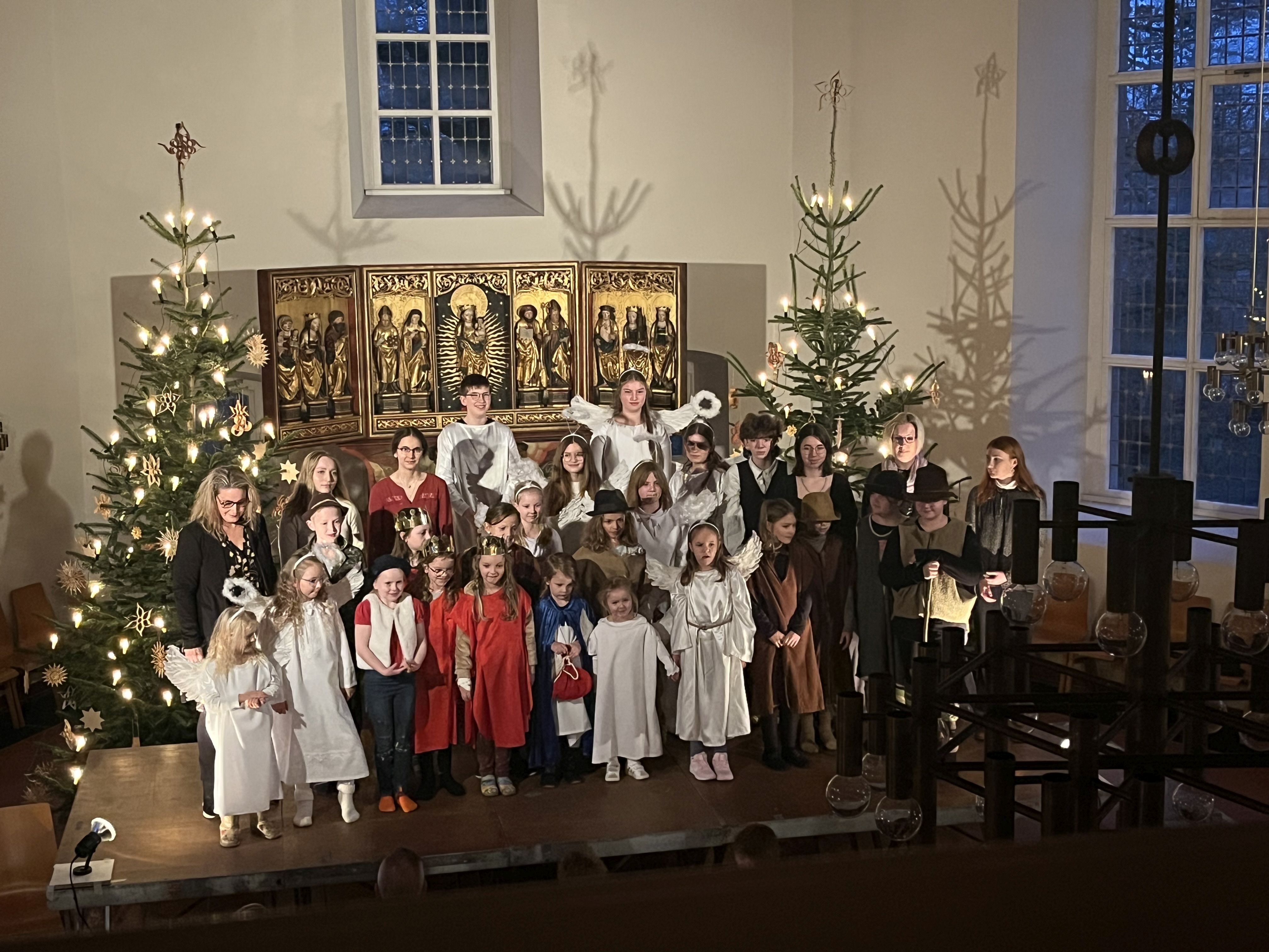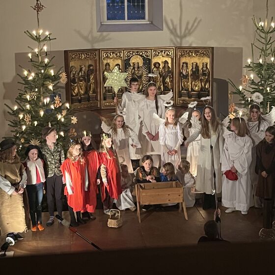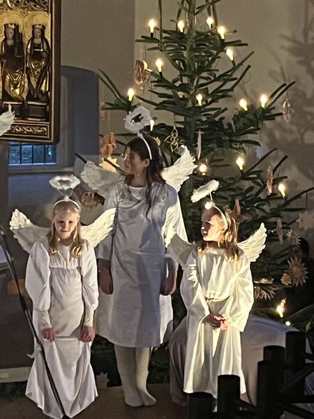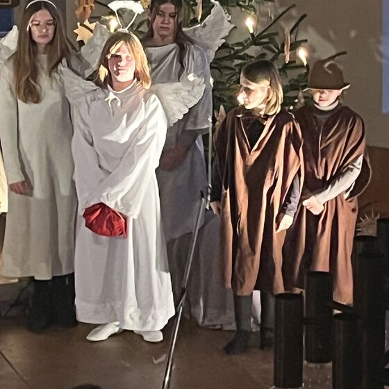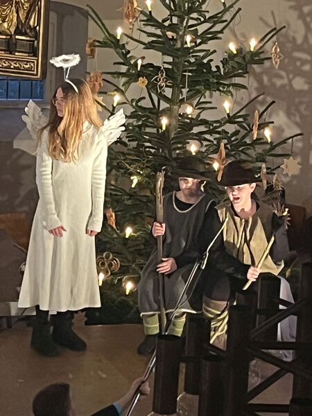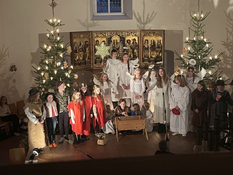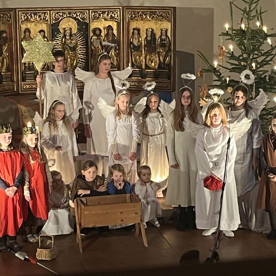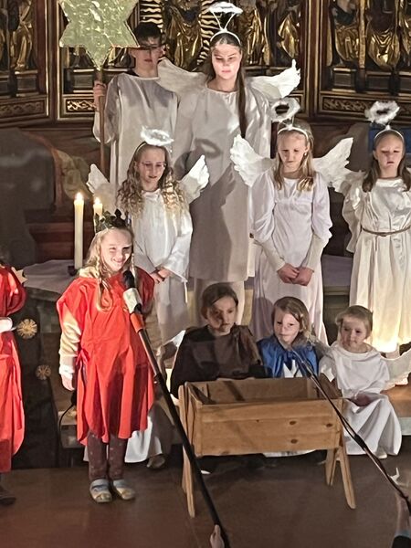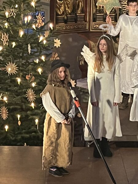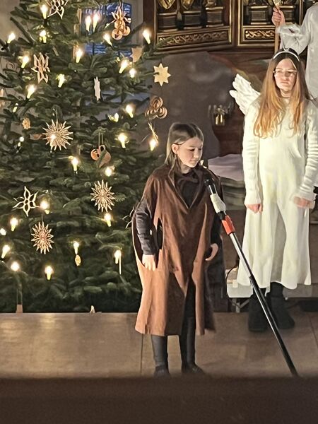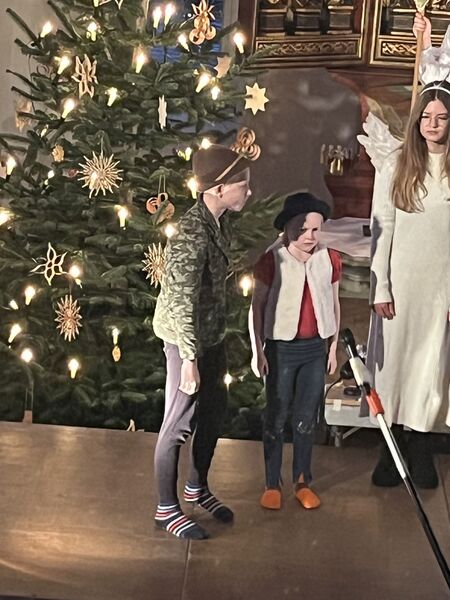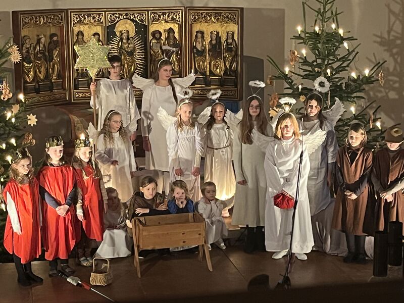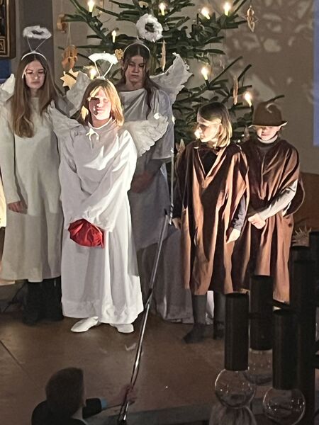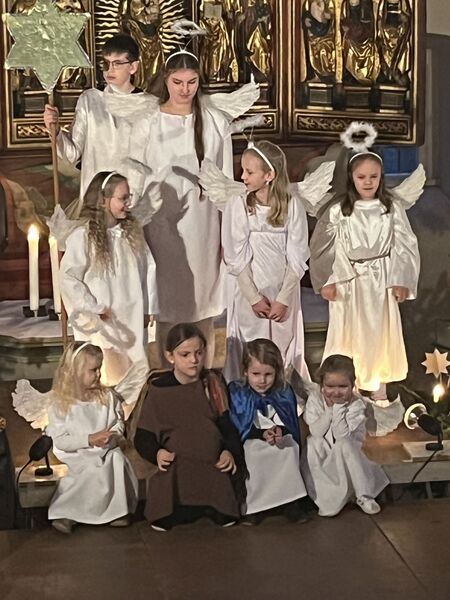 Die Kinder haben wieder sehr zur Freude der vielen anwesenden Eltern, Großeltern und Verwandten das Geschehen um Jesu Geburt vorgespielt, in diesem Jahr aus der Sicht der Engel.