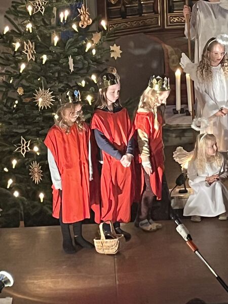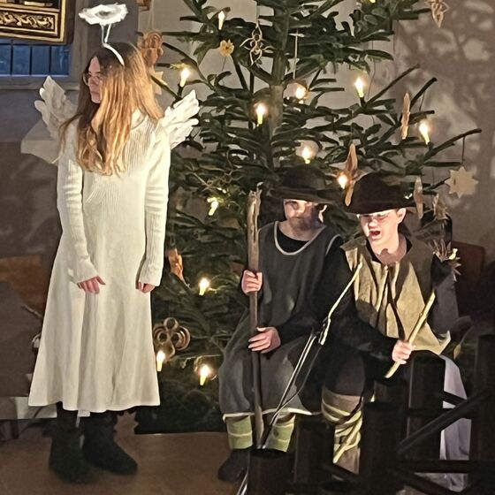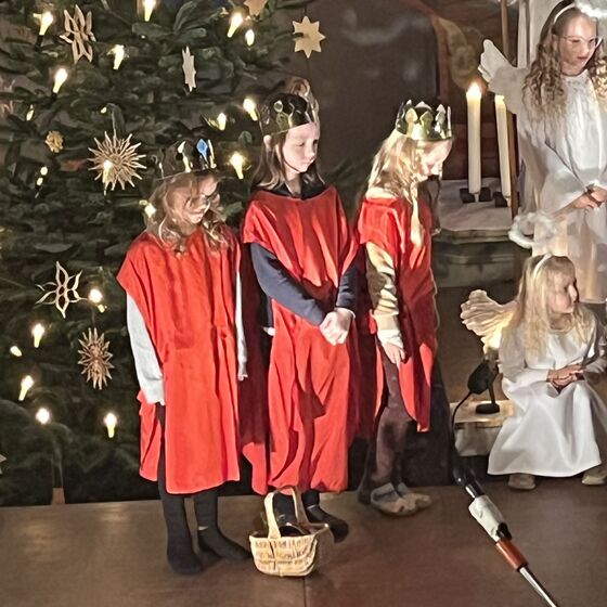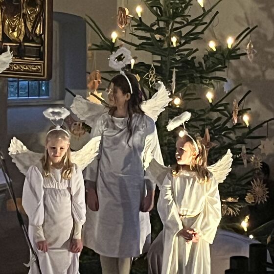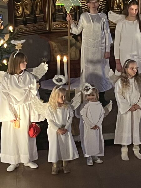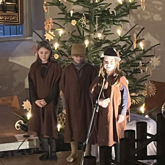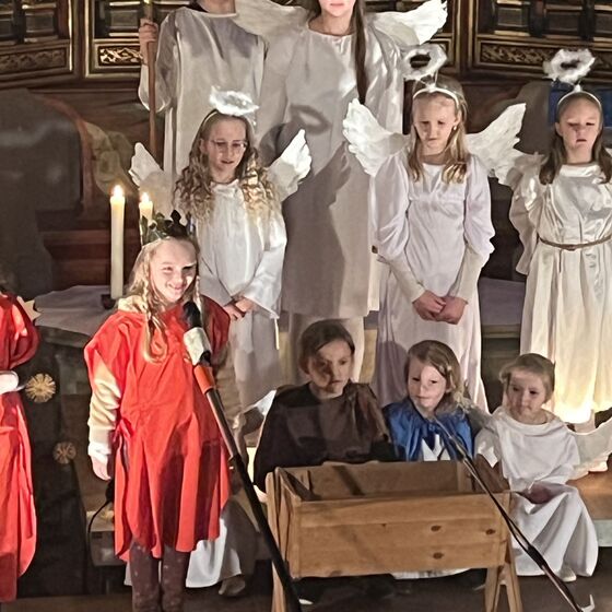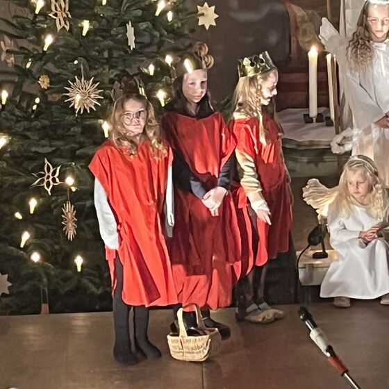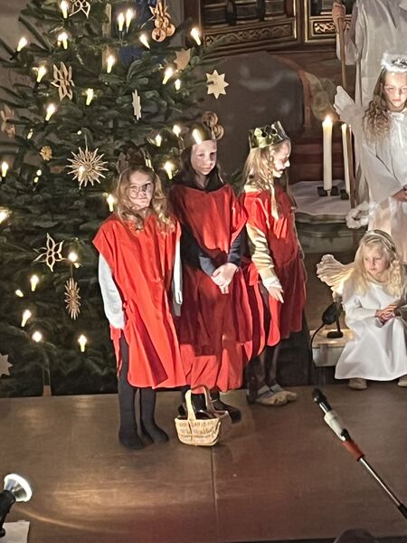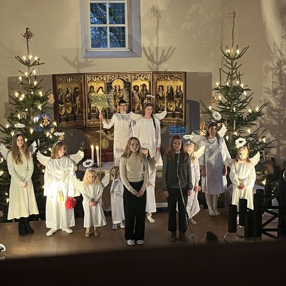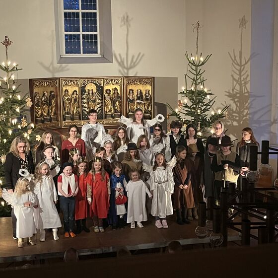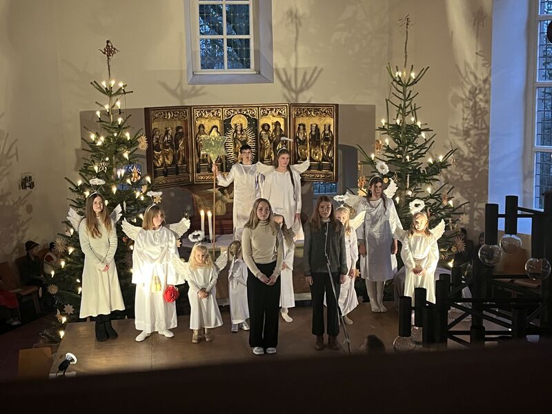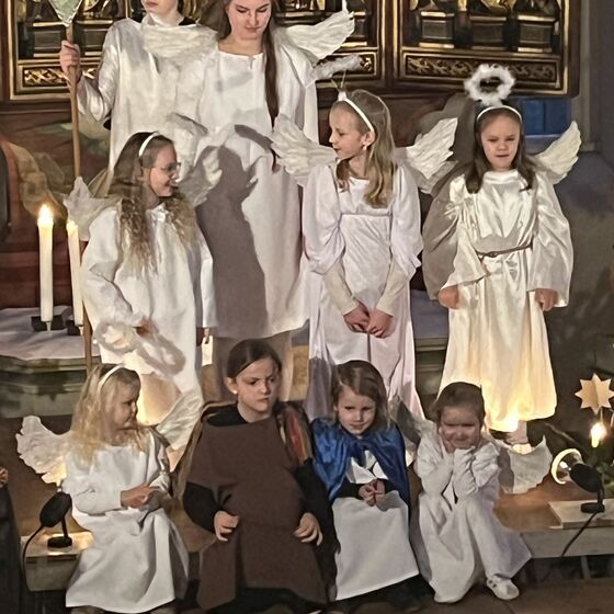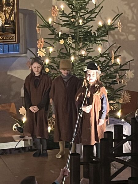 Die Kinder haben wieder sehr zur Freude der vielen anwesenden Eltern, Großeltern und Verwandten das Geschehen um Jesu Geburt vorgespielt, in diesem Jahr aus der Sicht der Engel.