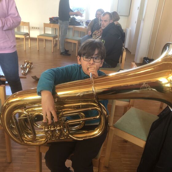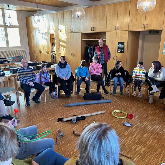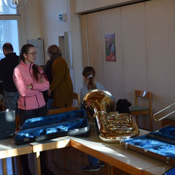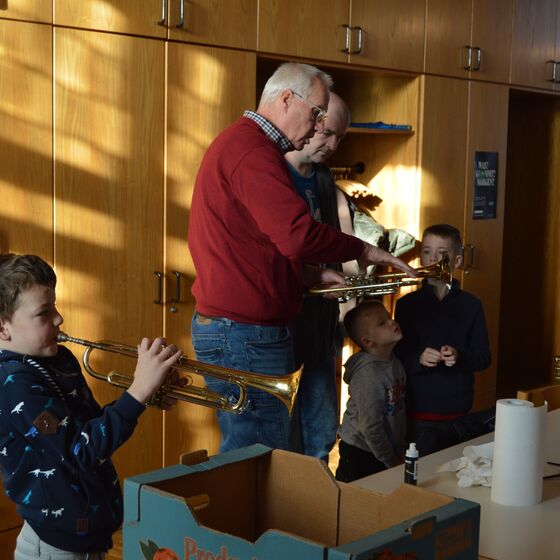 Nach einer Einleitung durch Martin Wiese konnten die vielen mitgebrachten Blasinstrumente ausprobiert werden.