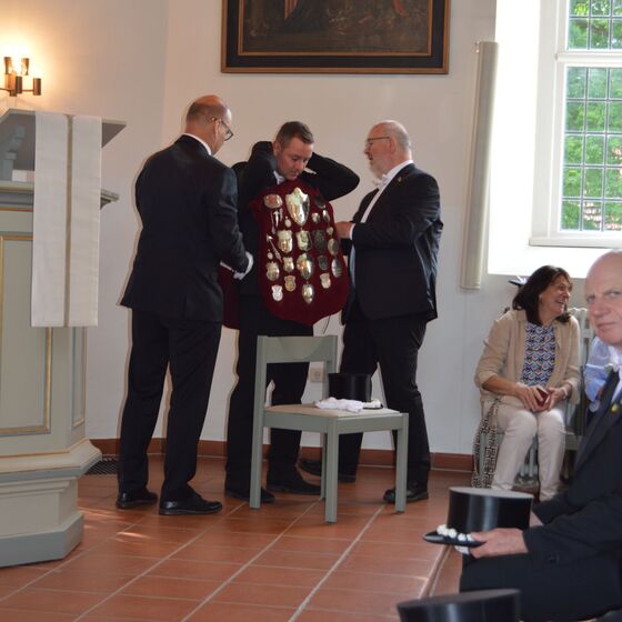 Der Gottesdienst am 1. Juni war gleichzeitig der Beginn vom Schütt`nhoff 2025 in Förste und Nienstedt. Die Kirche war vollgefüllt mit den Mitgliedern des Offiziums aus Förste und des aus Nienstedt, der Männerkompanie aus Nienstedt, der Buren, der Schützen, der Pioniere und der Junggesellen.