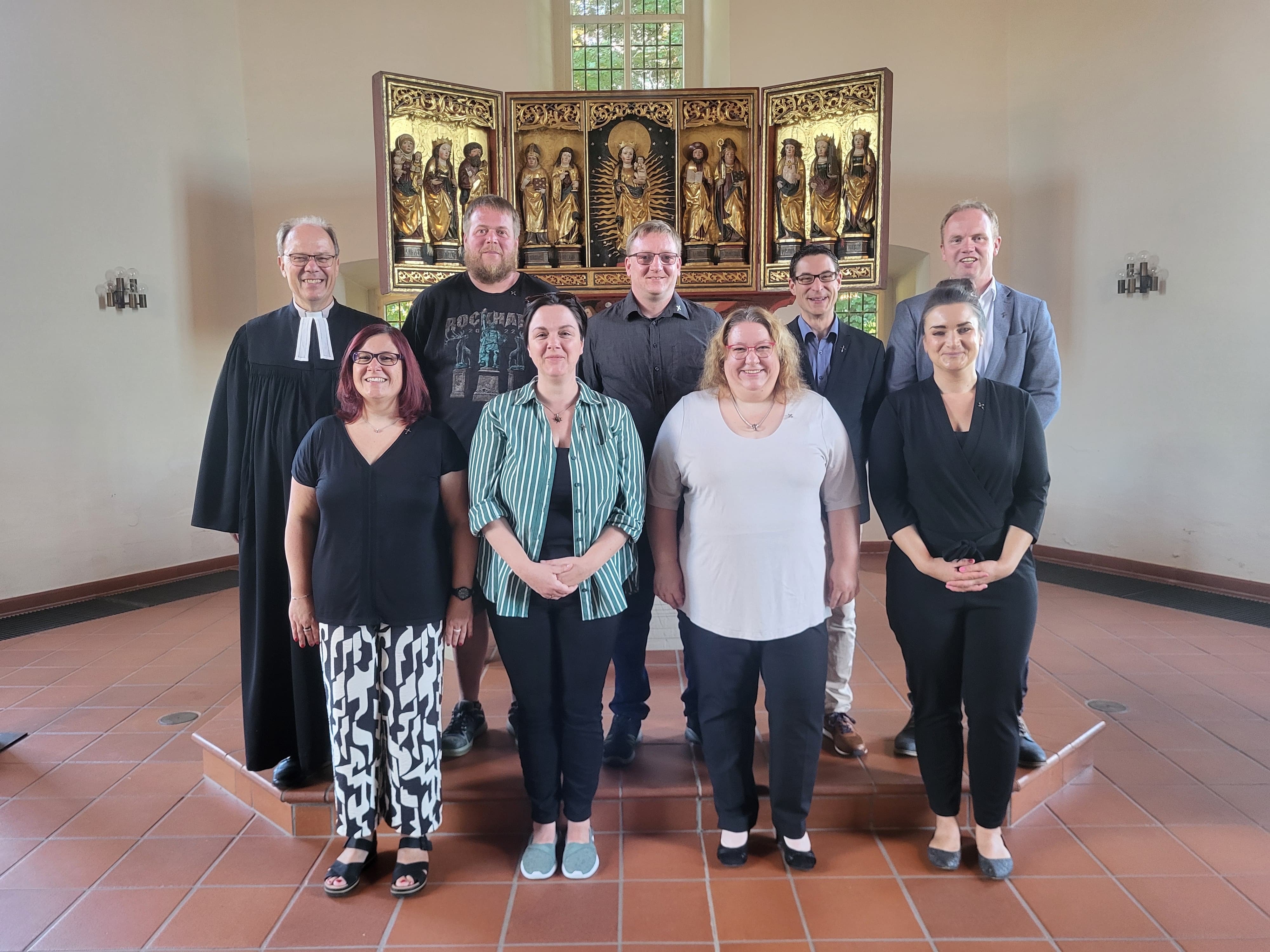 Dazu lud die Kirchengemeinde zu einem Gottesdienst mit Heiligem Abendmahl ein. Pastor Rumberg-Schimmelpfeng erinnerte an die damalige Zeit und die Herausforderungen des Lebens der letzten 25 Jahre. Beim anschließen Empfang im Gemeindesaal wurden rege Erinnerungen an Konfirmationssprüche, den Konfirmandenunterricht mit Herrn Pastor Wicke, die Konfirmandentage und die schöne Konfirmandenfahrt nach Bad Karlshafen ausgetauscht. Beim gemeinsamen Pizzaessen und erfrischenden Getränken verbrachten die silbernen Konfirmand*innen noch einige sehr schöne und heitere Stunden in der Kirche.