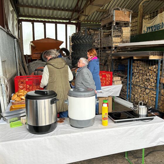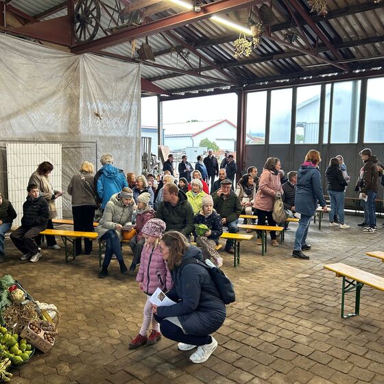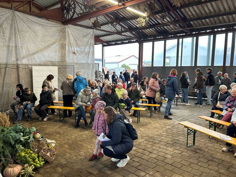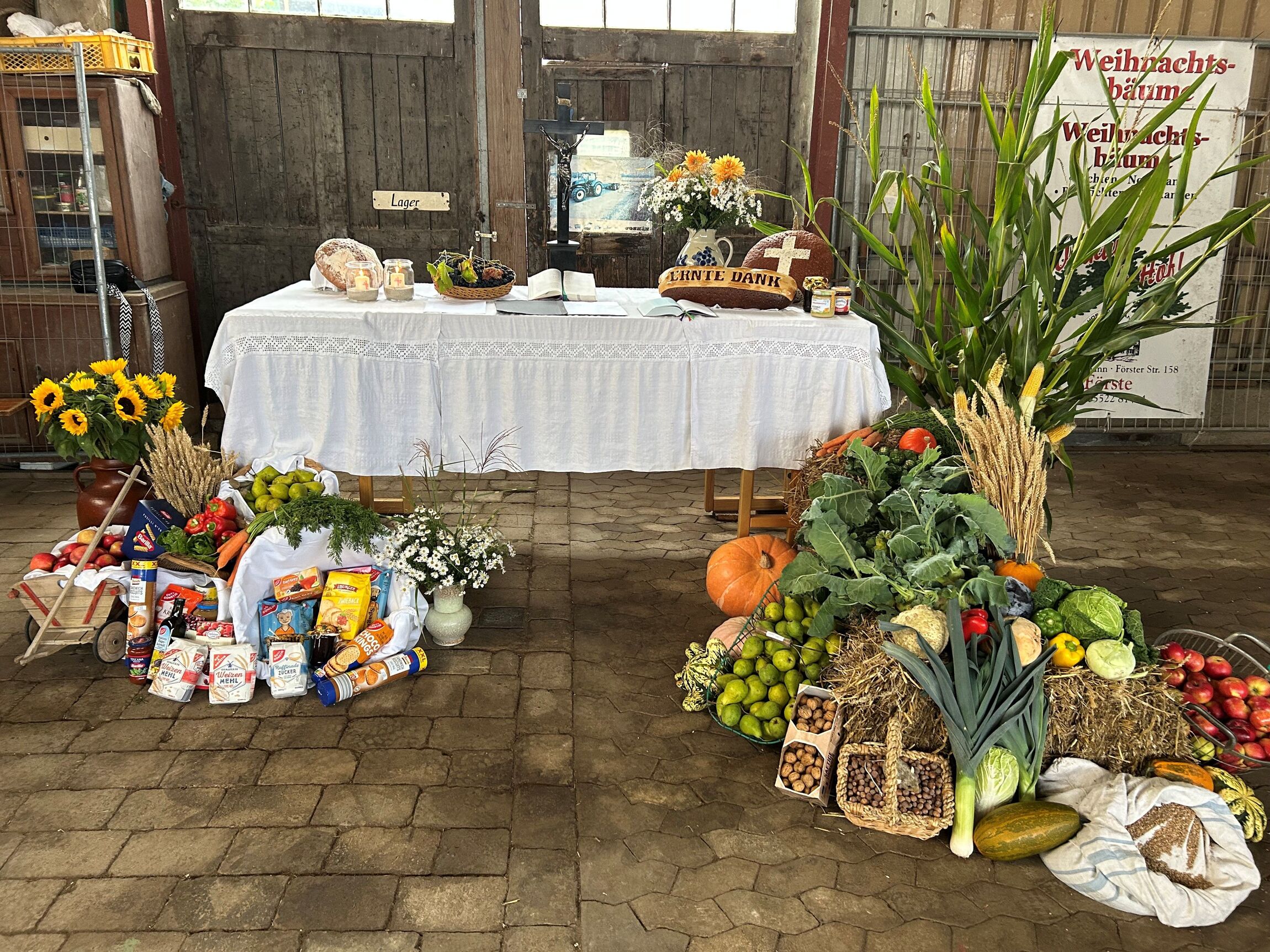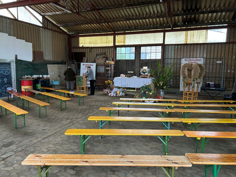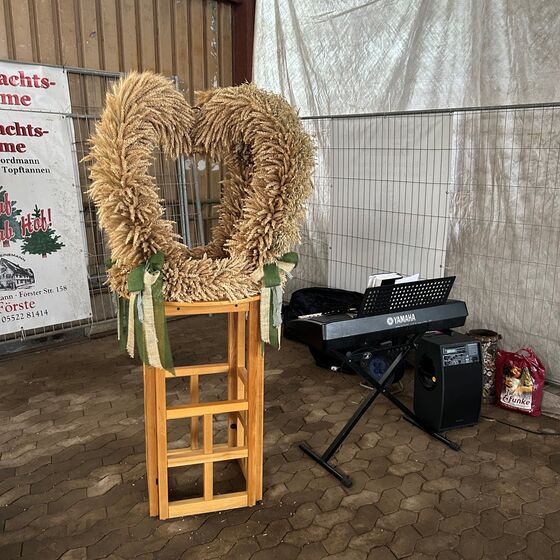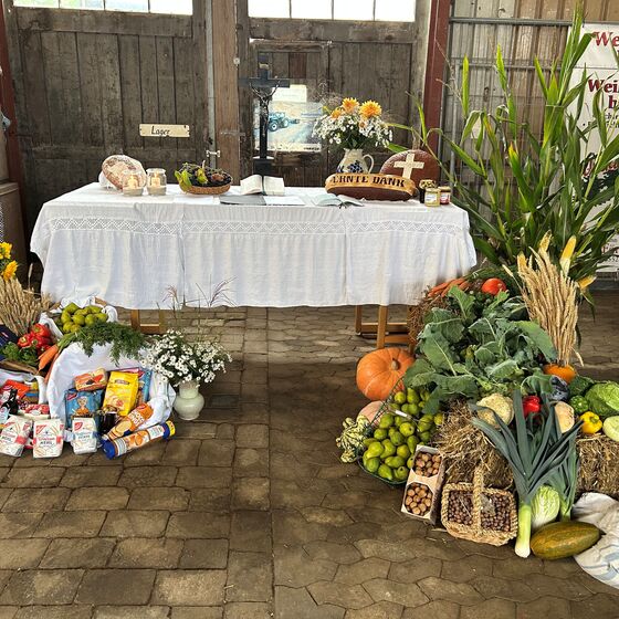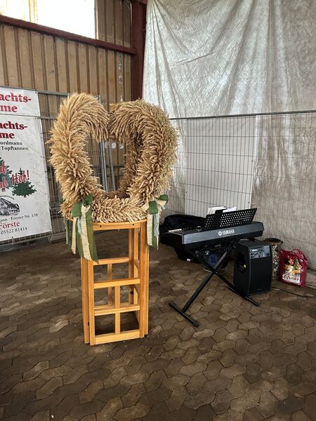 Familie Peinemann hat dafür am Vortag zusammen mit dem Kirchenvorstand und dem Erntedank-Altarschmück-Team eine Scheune auf dem Hof für den Gottesdienst vorbereitet und den Altar mit den Erntegaben geschmückt.