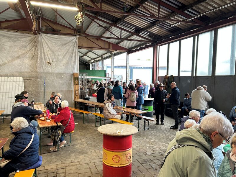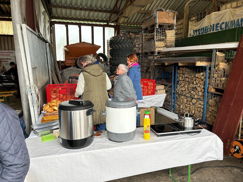 Im Anschluß an den Gottesdienst gab es beim Mittagsimbiss mit Frikadellen im Brötchen Gelegenheit zu netten Gesprächen.