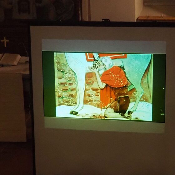 In der Kirche wurde vom Jugendkreis die Geschichte von Martin von Tours bildlich nacherzählt.