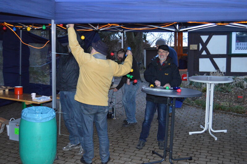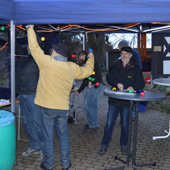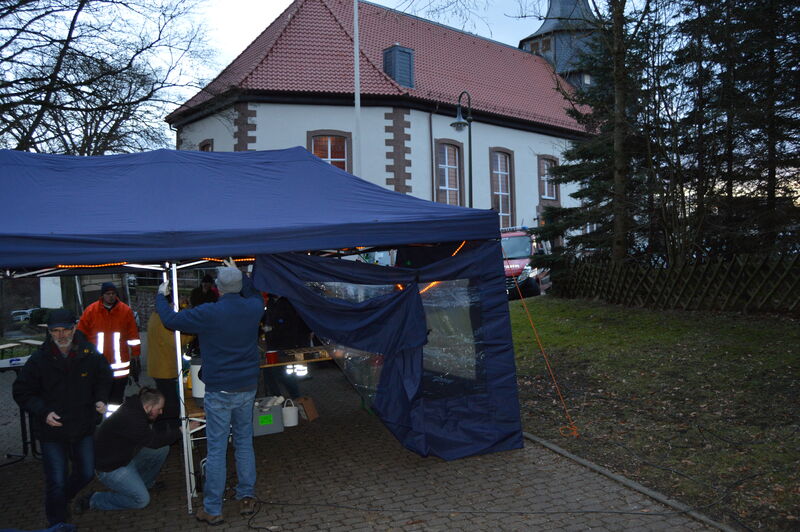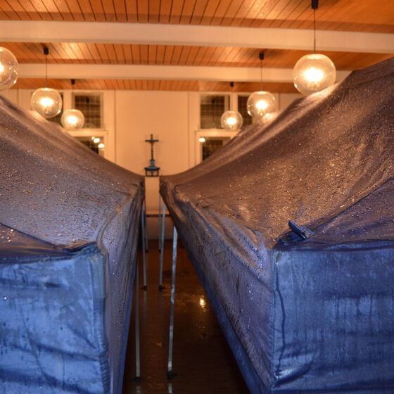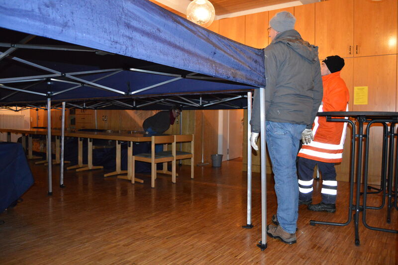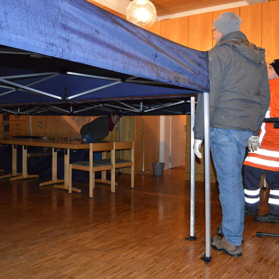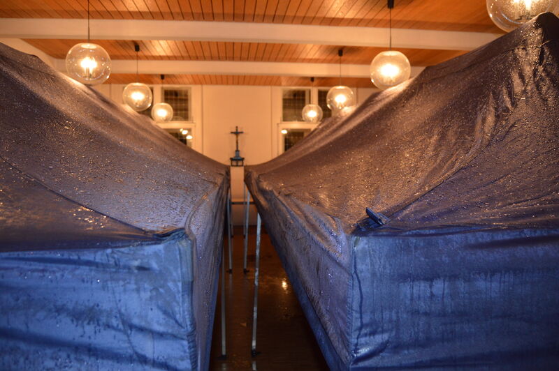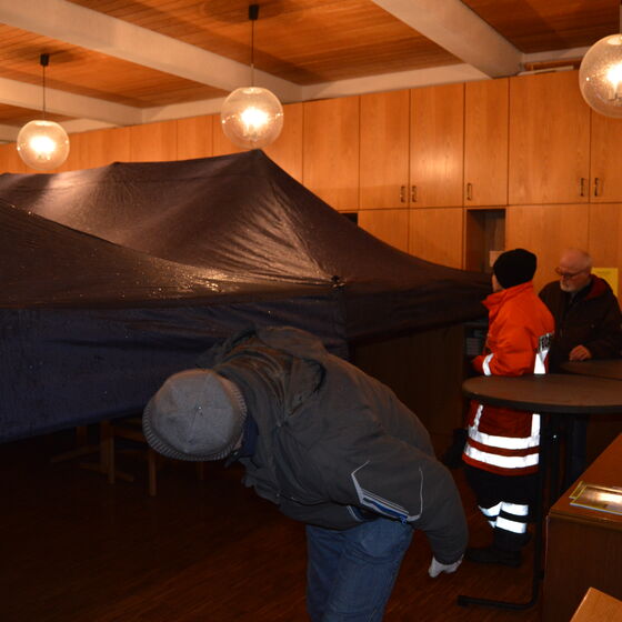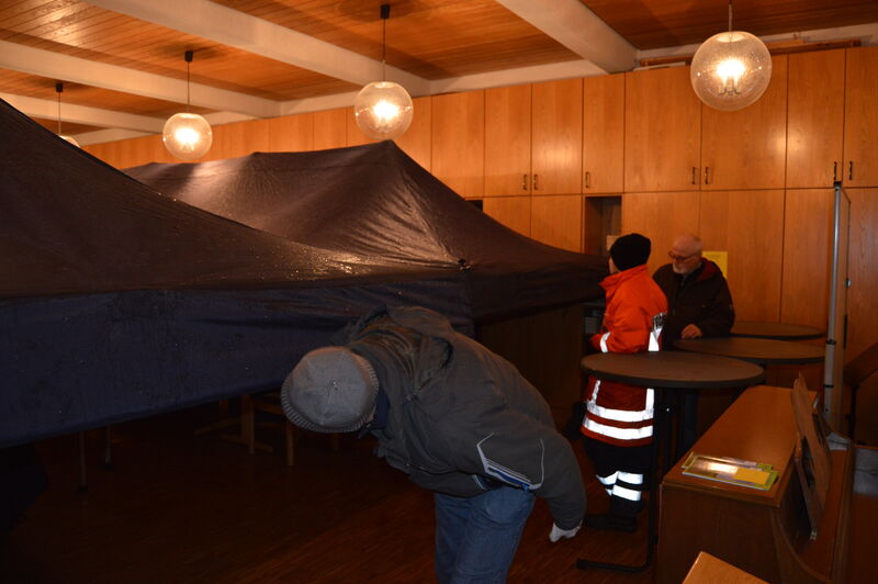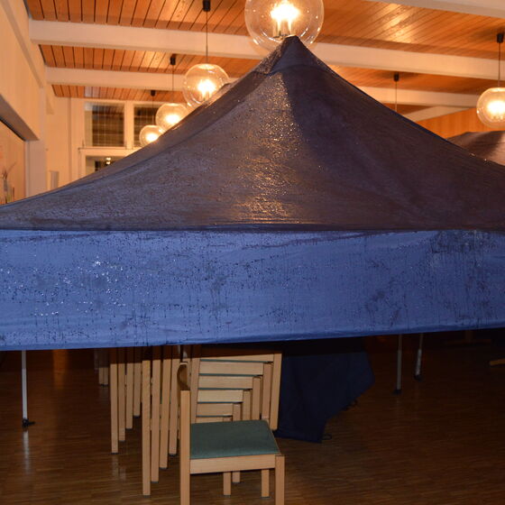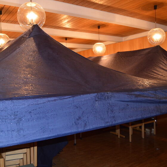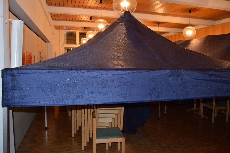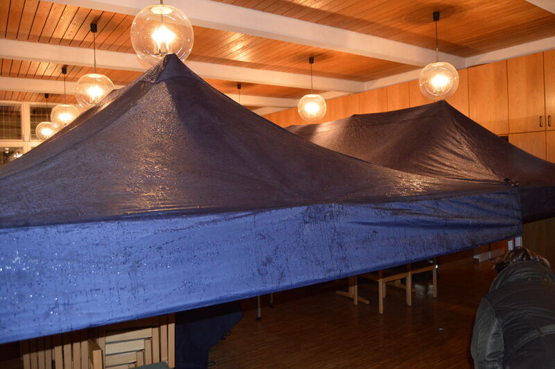 Nach Ende der Veranstaltung wurden die Pavillons im Gemeindesaal zur Trocknen aufgestellt.