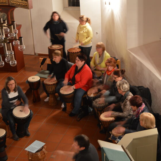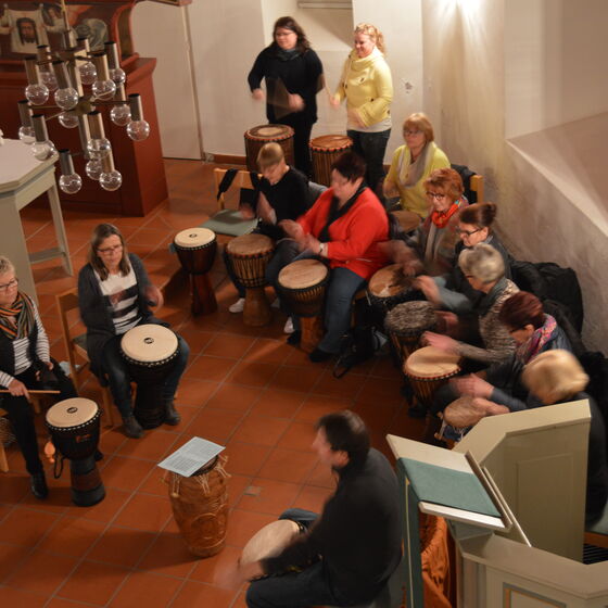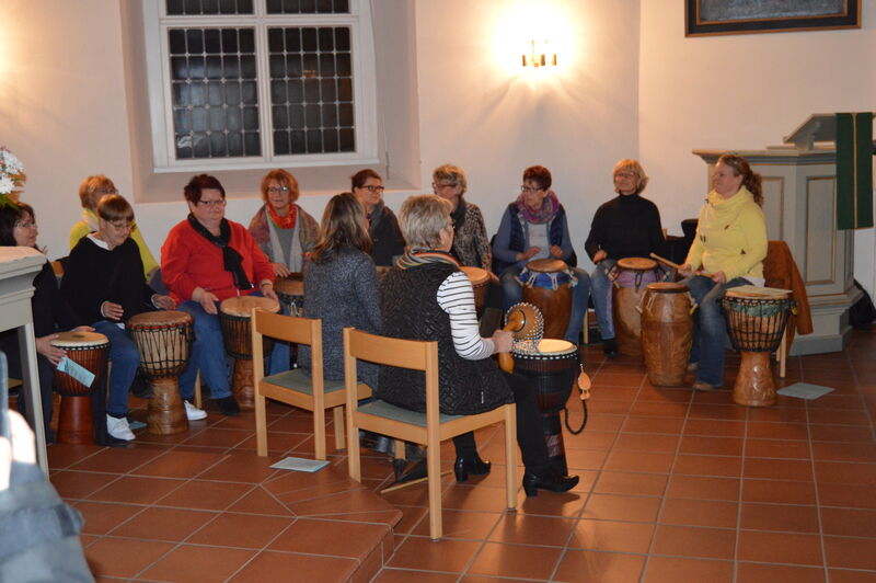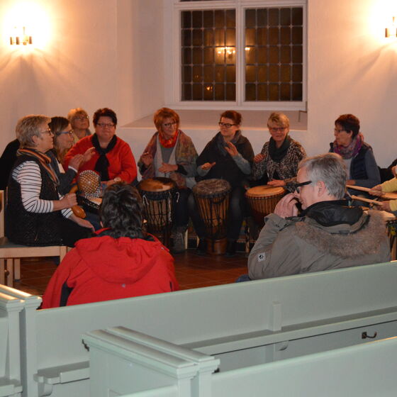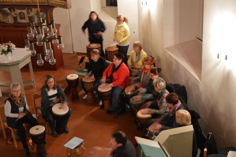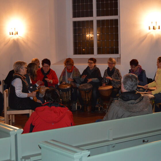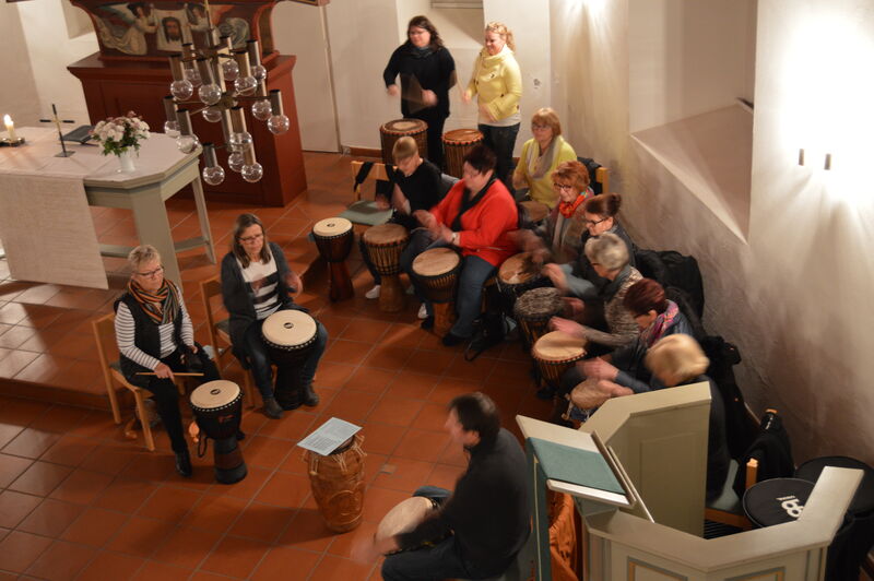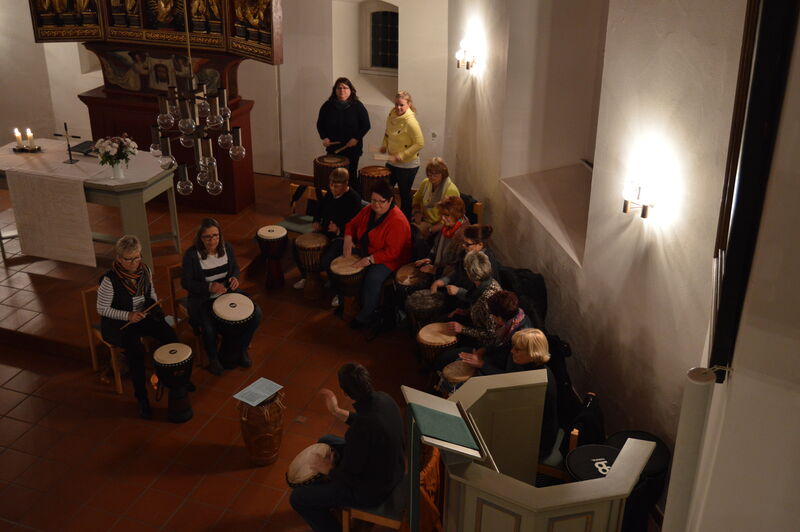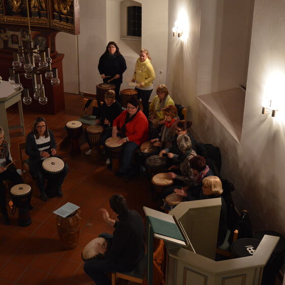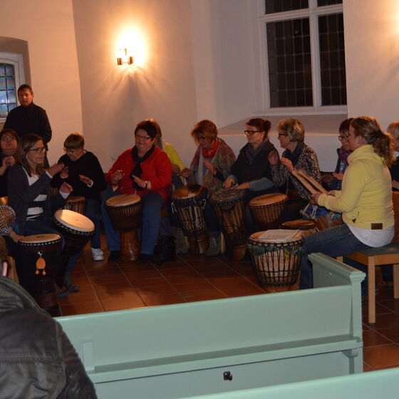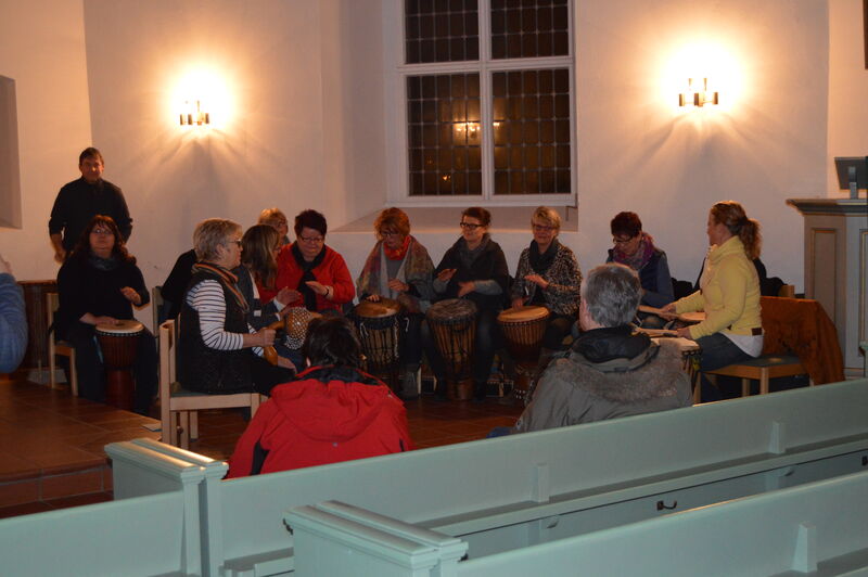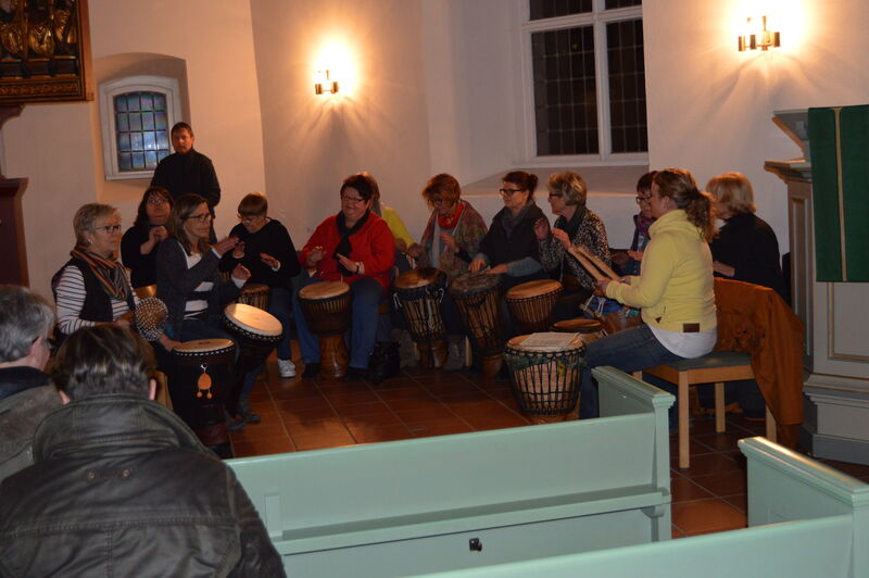 Um 18.00 Uhr begann die sehr gut besuchte Andacht in der Kirche mit einer musikalischen Einlage der Trommelgruppe.