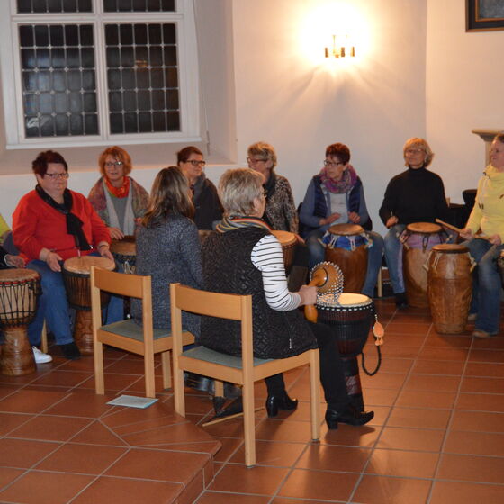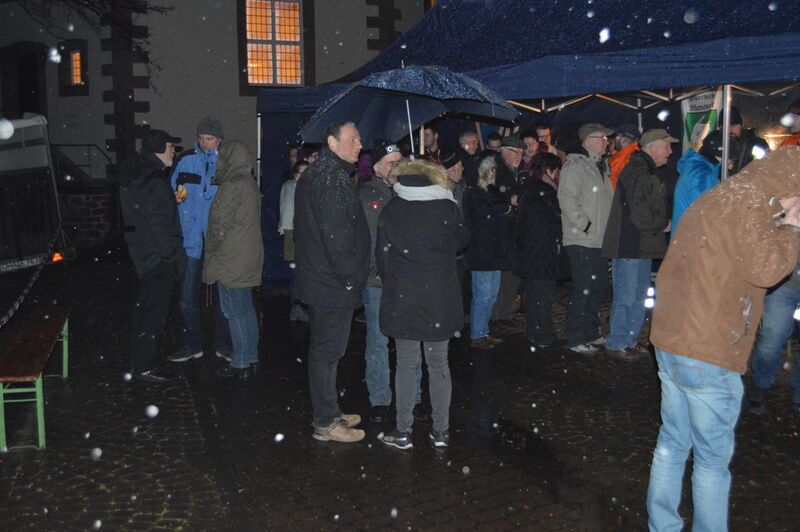 Nach dem Gottesdienst gab die Trommelgruppe noch einen kleine Einblick in ihr musikalisches Repertoire. Draußen hatte es inzwischen angefangen zu schneien. Trotzdem fanden sich viele Besucher bei Pfarrhaus ein.