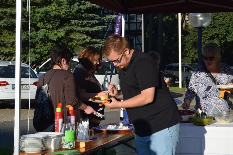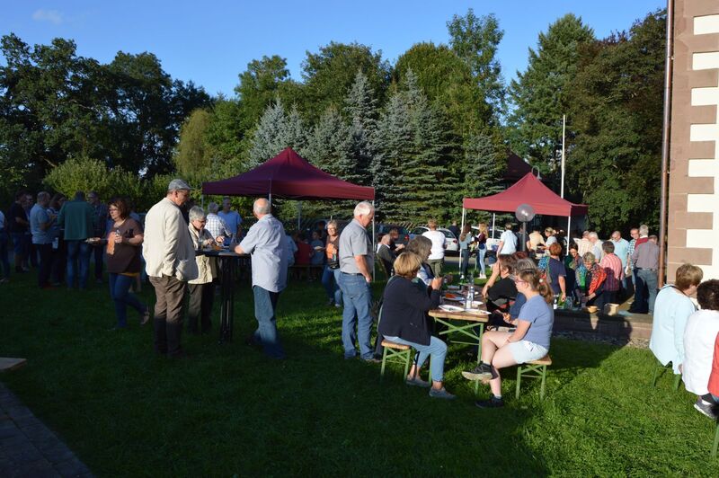 Treffen nach dem Vorstellungs-Gottesdienst der Vorkonfirmanden am 27.08.2017 in Nienstedt