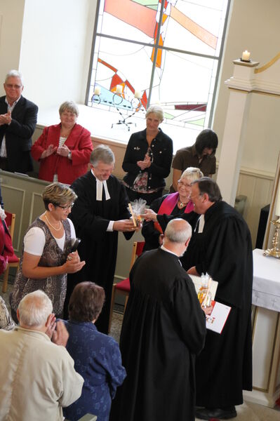 Neben vielen Grußworten und dem Willkommeslied der Eisdorfer KiGa-Kinder gab es für Pastor Teicke auch einige nützliche Präsente, wie z.B. eine regionale Wanderkarte und einen Osteroder Stadtplan, damit er sich nicht verläuft. Seine Feuertaufe hat Pastor Teicke bereits beim Eisdorfer Schüttenhof bestanden und zumindest Eisdorf beim Umzug intensiv erkundet. Thomas Borchert, Vorsitzender des Einbecker Kirchenvorstandes, bat darum Pastor Teicke hier pfleglich zu behandeln. Nach seiner Amtszeit hätten sie ihn dann gerne unbeschadet wieder. Smiley